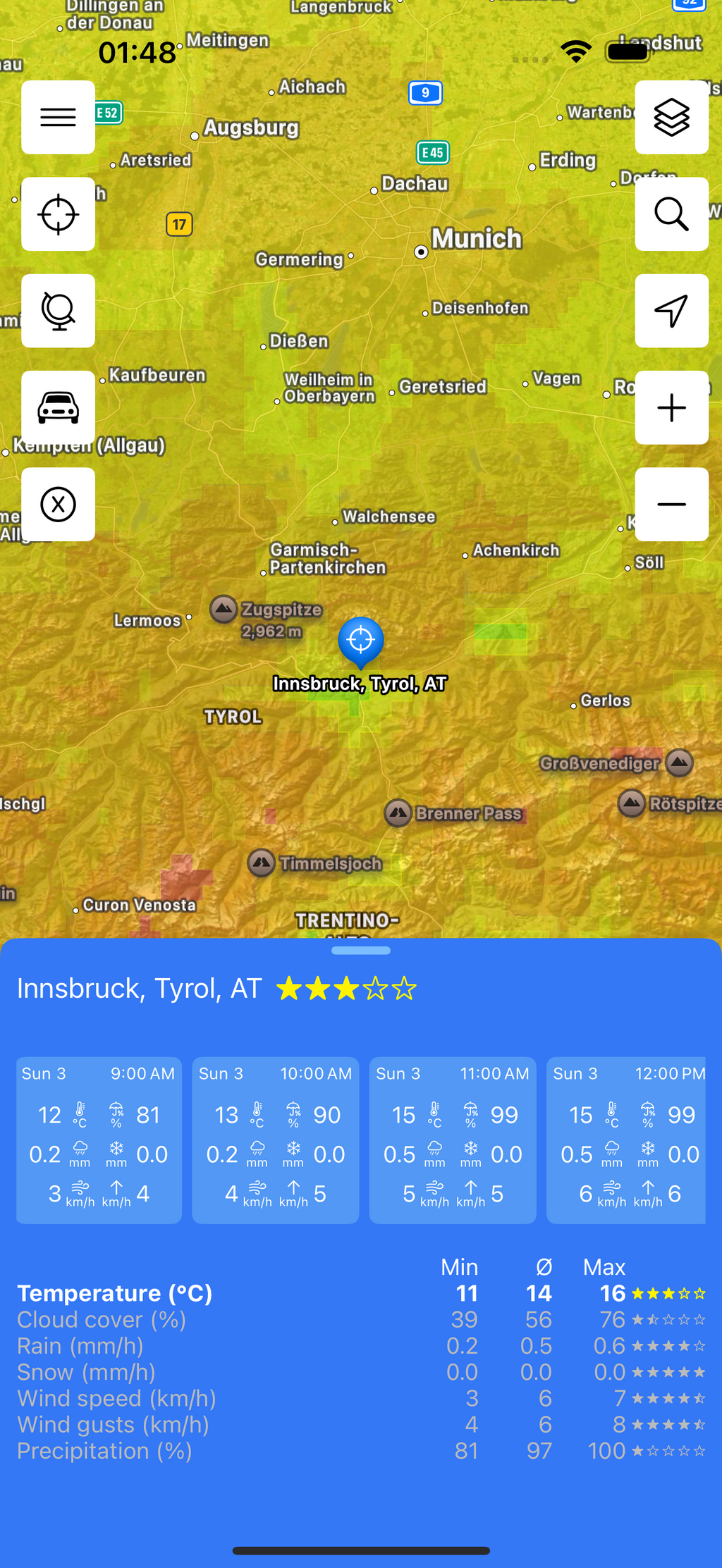 Set your dream weather worldwide with just a few clicks and within seconds you’ll see on your personal weather map where to find it. Simply look for regions shown in green, like a traffic light. You should avoid yellow or even red regions. It’s really extremely easy and fast—just try it for free!